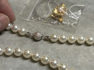 金具同士を近づけると…パチンッとくっつき😍 ★パールネックレス金具交換
