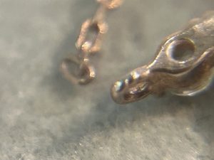 顕微鏡をのぞき込みながら、チェーンを幾分広げ