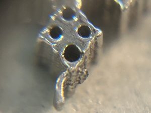 まずは、地金の強度が耐えうる箇所に貫通穴を作ります。