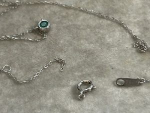 誕生石でいつも身に着けているものだから、気をつけてはいたものの洋服と共に引っ張ってしまいプチンっっと!