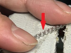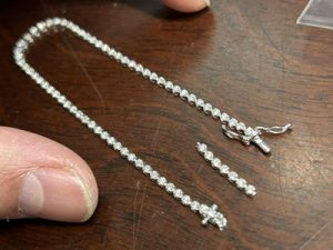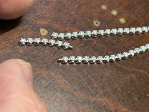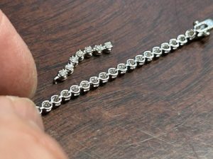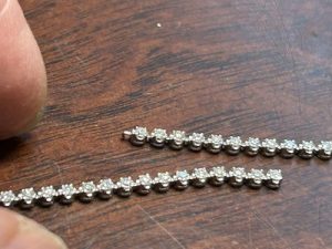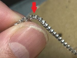 標準のサイズのダイヤモンドブレスレットでしょうが、とっても小さい方でこのままじゃ着けてると無くしてしまいそう…