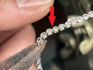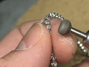 しっかりとロウ付けでき、可動領域も問題ないことを確認し、余分なロウ材を落としていきます。 ★ダイヤモンドブレスレット