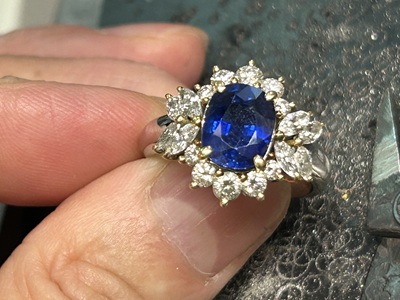 とっておきのサファイア指輪:取れてしまったマーキスダイヤの石合わせと共有爪の石留め修理