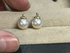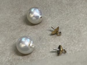 長年そのままだった真珠のピアスをイヤリングへと加工し