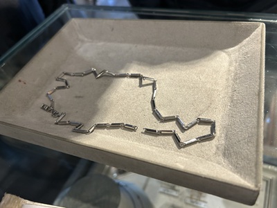 火を通してロウ付け修理できない素材の為、この一コマだけを取り除きマルカンで繋ぐ案をご提示。